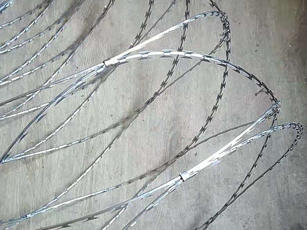 (2)刀片刺绳由冲切钢板采用机械轧在钢丝上成型,刀刺宽度22mm,刀刃垂直间距15mm,刀刺纵向间距34mm,芯丝直径为
